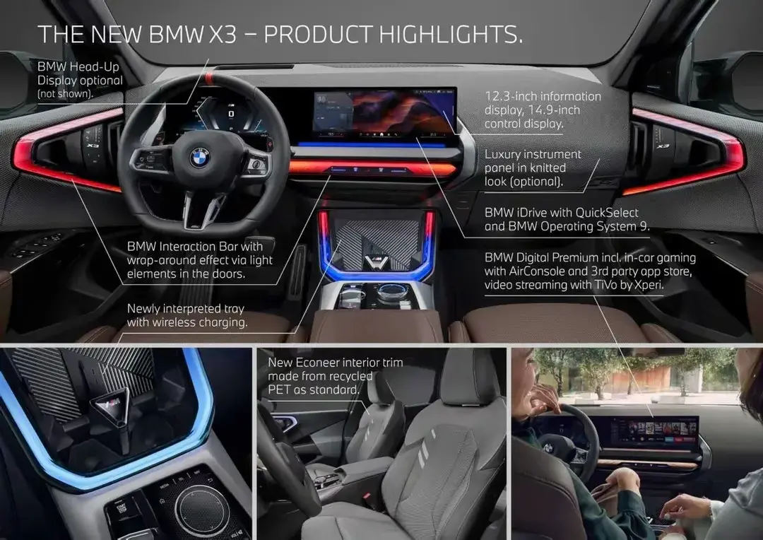 當下全新的第4代寶馬x3實車曝光并且在海外即將上市,可以說全新的第4代寶馬x3在外觀和內飾方面都打破了傳統的設計風格和理念,整體的科技感和運動感更強,對于老款車型對比來說,可以說一代更比一代強。這款全新的第4代寶馬x3和老款車型形成了鮮明的對比,整體的氣場拉。滿,在整體的外觀設計方面更加具有立體化,風格表現寶馬x3是一款豪華中型suv,國內消費者。無論是年輕人還是中年消費群體,對于這款車型都是非常了解的,這款車型展現出的綜合實力也比較強,品牌力空間動力和整體的流行化風格都非常濃重,是一款比較符合年輕人的車型,尤其是第4代版本,運動感更加充分。