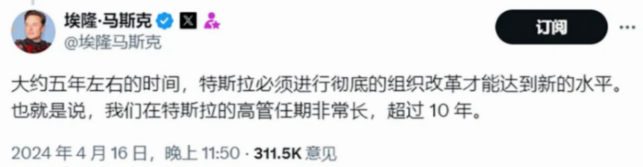 有趣的是,在裁員行動(dòng)進(jìn)行期間,馬斯克又在社交媒體上發(fā)文表示:“每隔大約五年,特斯拉就必須進(jìn)行一次徹底的組織改革才能達(dá)到新的水平。”而這一表態(tài),無(wú)疑宣告本次特斯拉裁員可不是做做樣子那么簡(jiǎn)單,而是要從根本上地降本增效以提高企業(yè)的競(jìng)爭(zhēng)力。