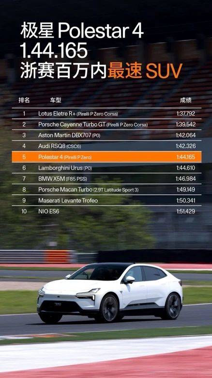 極星4成100萬以內浙賽最速SUV