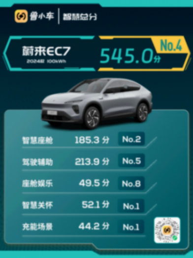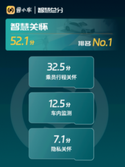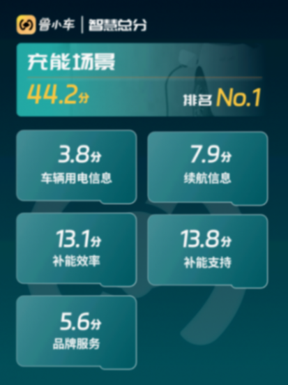 根據(jù)魯小車新能源智慧評測標(biāo)準(zhǔn)2.0,該測試車型當(dāng)前以545.0分的智慧總分成績,在魯小車智能總榜上排名第4位。從場景評分來看,該測試車型在智慧關(guān)懷和充能場景這兩大場景的優(yōu)勢相對明顯。