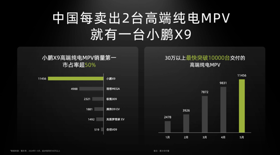 不夸張的說(shuō),現(xiàn)在中國(guó)每賣出2臺(tái)高端純電MPV,就有一臺(tái)是小鵬X9。