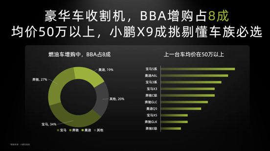 增購(gòu),即把X9作為家庭第二輛車的用戶,是X9用戶的主流。而在這占據(jù)半數(shù)的X9增購(gòu)群體中,B B A車主占了8成,其中不乏勞斯萊斯、法拉利這樣的超豪華品牌。他們上一臺(tái)車的均價(jià)都在50萬(wàn)以上。所謂曾經(jīng)滄海難為水,長(zhǎng)期使用豪華車的消費(fèi)者對(duì)車輛品質(zhì)的感知能力和要求是普遍較高的,這類消費(fèi)者青睞小鵬X9,也從側(cè)面說(shuō)明X9的實(shí)際體驗(yàn)是相當(dāng)OK的。