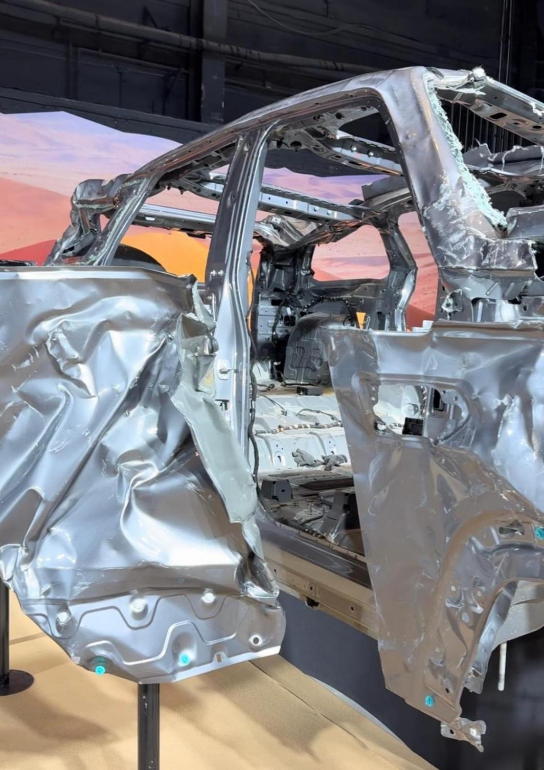 比如在研發階段,一般整車參考的動態翻滾標準是美國的FMVSS208法規,試驗速度為48km/h。但為了能給到用戶更高的安全保證,北汽選擇將試驗速度提升到65kph進行實際翻滾驗證,最后A柱、B柱均無明顯變形,車門也能正常打開,艙內人員生存空間較為充裕。