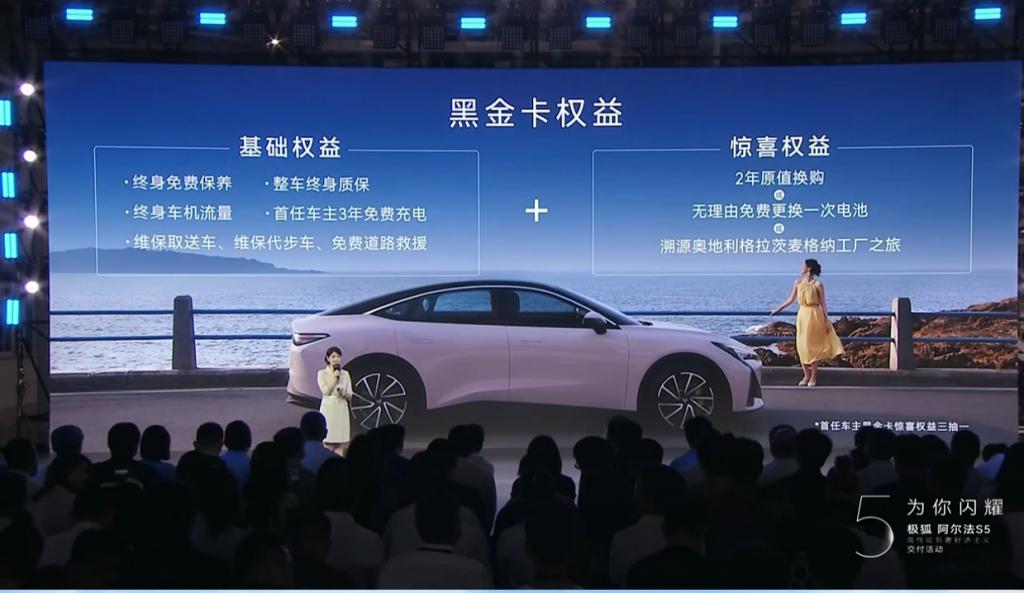 而在交付儀式上,這層緊密合體又再升級。為體現對用戶的關懷,三位 " 大家長 " 帶來了價值喜人的黑金卡權益,包括終身免費保養、終身車機流量、首任車主 3 年免費充電、維保取送車、維保代步車、免費道路救援等鉅惠權益,讓用戶代表們大呼驚喜。
