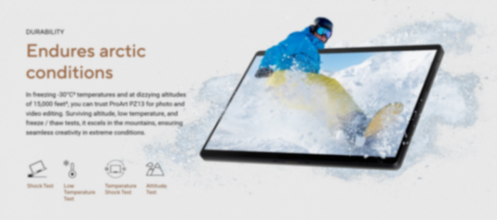 有網(wǎng)友推測,這兩款新品的后者正是此前在 Computex 2024 上亮相過的創(chuàng) ProArt PZ13 二合一電腦,畢竟在這款產(chǎn)品的介紹之中就有談到各式運動,其中正有與海報之中的滑雪對應的介紹頁面,展現(xiàn)的是其出色的耐用品質。