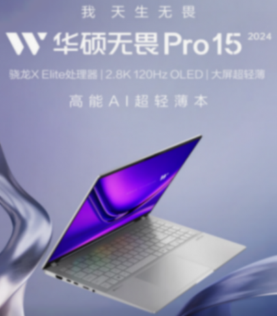 華碩也有搭載驍龍 X Elite 處理器的筆記本電腦,最新發布的就是華碩無畏 Pro 15 2024 驍龍版。這款筆記本不僅有強大的性能和 AI 能力,還擁有一塊 2.8K OLED 屏幕,支持 120Hz 高刷新率,還有 100% 的 P3 廣色域覆蓋,觀感更舒適。