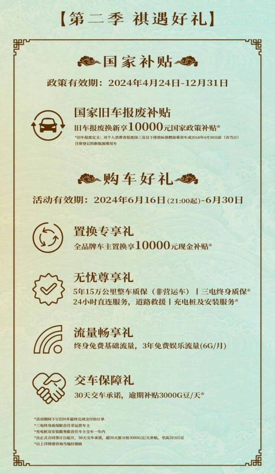 為了讓更多用戶盡早享受到傳祺新能源ES9的高價(jià)值,即日起至6月30日,通過廣汽傳祺 APP、微信小程序等廠方平臺(tái)支付 5000 元訂金的客戶,可獲全品牌車主置換10000 元現(xiàn)金補(bǔ)貼,非營(yíng)運(yùn)車5年15萬公里整車質(zhì)保,首任非營(yíng)運(yùn)車車主三電終身質(zhì)保服務(wù)。