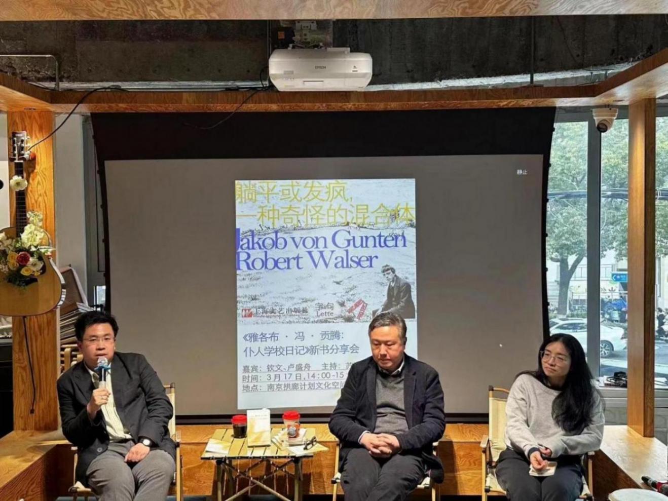 蘇遠:大家下午好,歡迎各位來到現場,我們今天在這里舉辦的是關于羅伯特·瓦爾澤的一本再版新書——《雅各布·馮·貢騰:仆人學校日記》的活動,我們今天請到的是欽文老師和盧盛舟老師。欽文老師是德語文學史學者、譯者,任教于南京外國語大學,著有《叔本華及哲學的狂野年代》等,盧盛舟老師是南京大學外國語學院的副教授,慕尼黑大學的文學博士,譯有《作家和出版人》。
