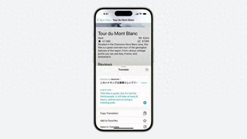 蘋(píng)果公司目前已經(jīng)在 Safari 等瀏覽器中提供了系統(tǒng)級(jí)翻譯功能,而本次推出新的 API,便于其它 App 快速實(shí)現(xiàn)翻譯,例如用戶(hù)和某位外國(guó)友人聊天,那么 App 可以調(diào)用 API 快速翻譯為中文。