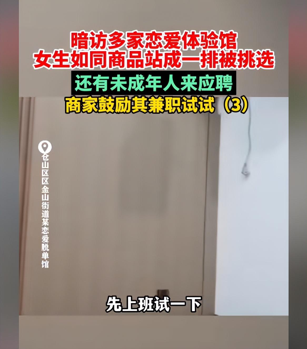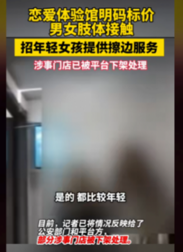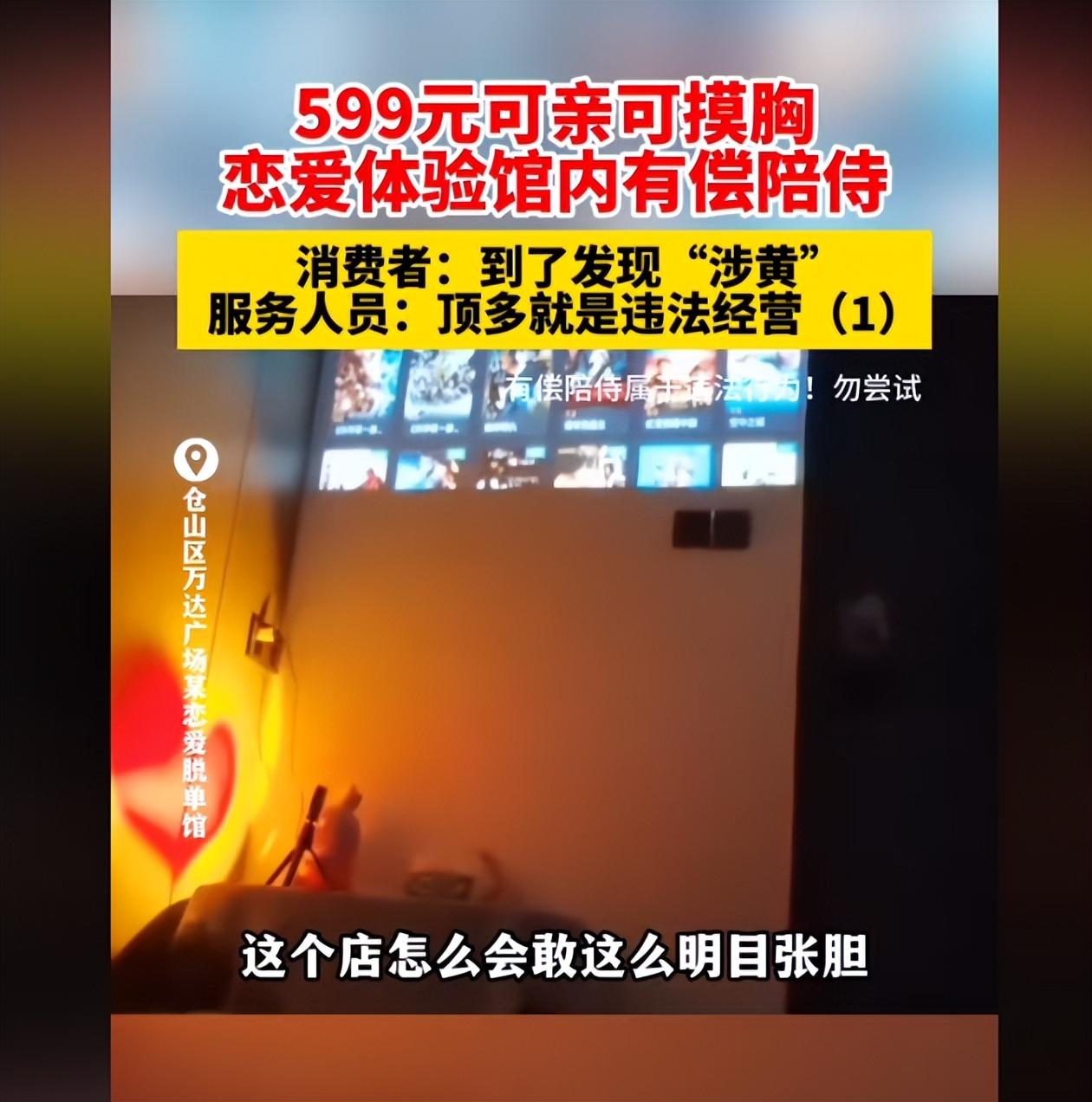 日,在福州倉山區萬達廣場某戀愛體驗館、臺江寧化街道某解壓俱樂部明碼標價可以肢體接觸,戀愛體驗實則擦邊涉黃,網上招聘學生,允許未成年人服務“上崗”這一事件的曝光引起網友們紛紛吐槽。