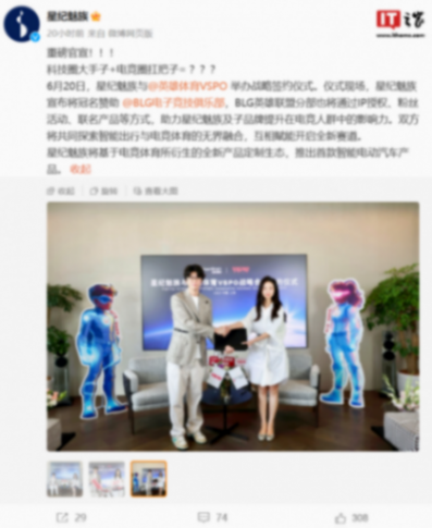 6 月 21 日消息,星紀魅族集團昨日官宣,正式成為 BLG 電子競技俱樂部冠名合作伙伴。