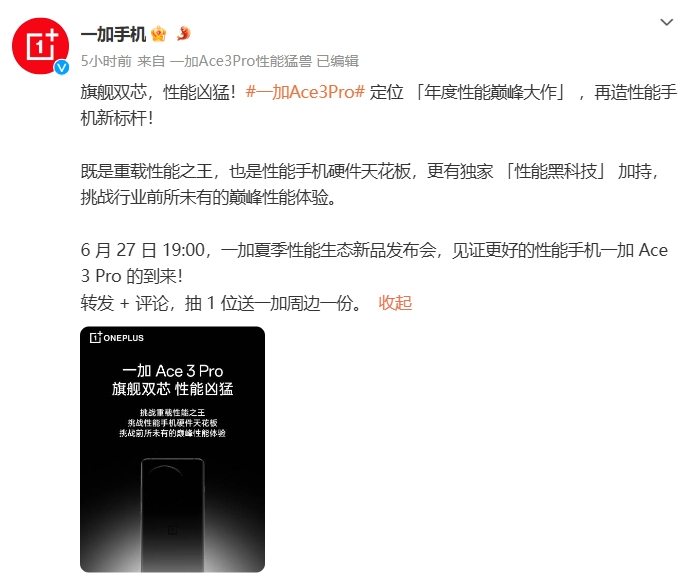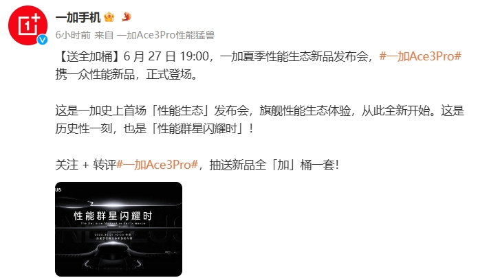 一加 Ace 3 Pro 馬上來!一加夏季性能生態(tài)新品發(fā)布會(huì)定檔