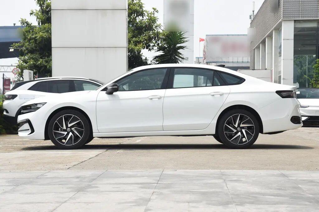 移步來到全新一代邁騰的車身側面,得益于溜背車頂的加入,讓車身看起來比較有運動氣質。并且平直的腰線貫穿前后,再加上造型精致的多輻條旋風鋁合金輪轂,可謂給人不俗的視覺沖擊力。對比本田雅閣以及豐田凱美瑞等同級競品的顏值,全新一代邁騰也有足夠的實力應戰。