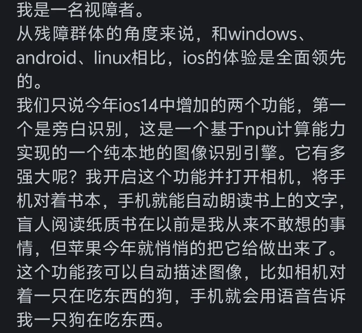 你可以有一個個理由噴iPhone,但是對殘障人士做的功能,蘋果是沒有任何理由噴的。功能完善,耿直多年。