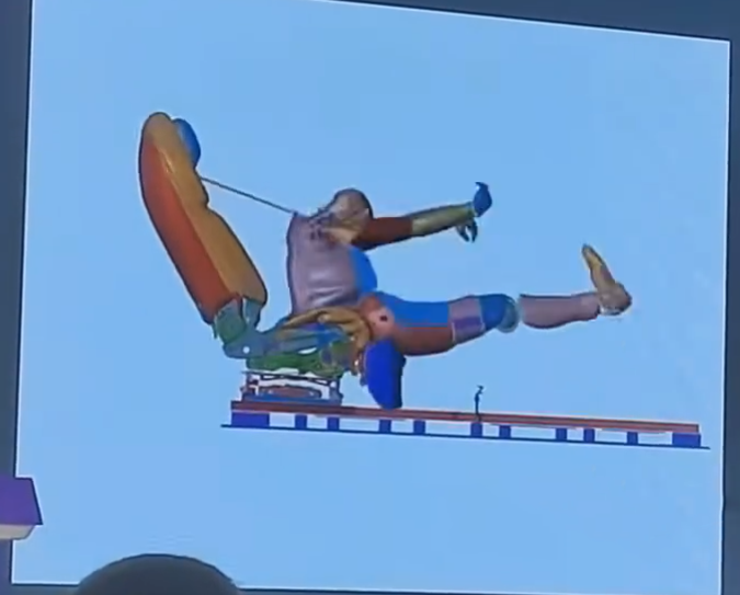 有測試機構專門進行了“零重力”的模擬測試,能發現當假人處在半躺狀態的時候,身體的俯仰角度很大,因此安全帶的束縛力不足。如果是傳統坐姿發生碰撞事故,假人的身體因為慣性是向前走的。但是“零重力”座椅上的假人是向前,同時又 向下走的。這個時候安全帶就會勒住你的脖子。