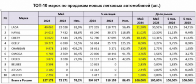 數據顯示,2024年1-5月份,俄羅斯乘用車市場的總銷量達到了594,917輛,同比增長86.4%。