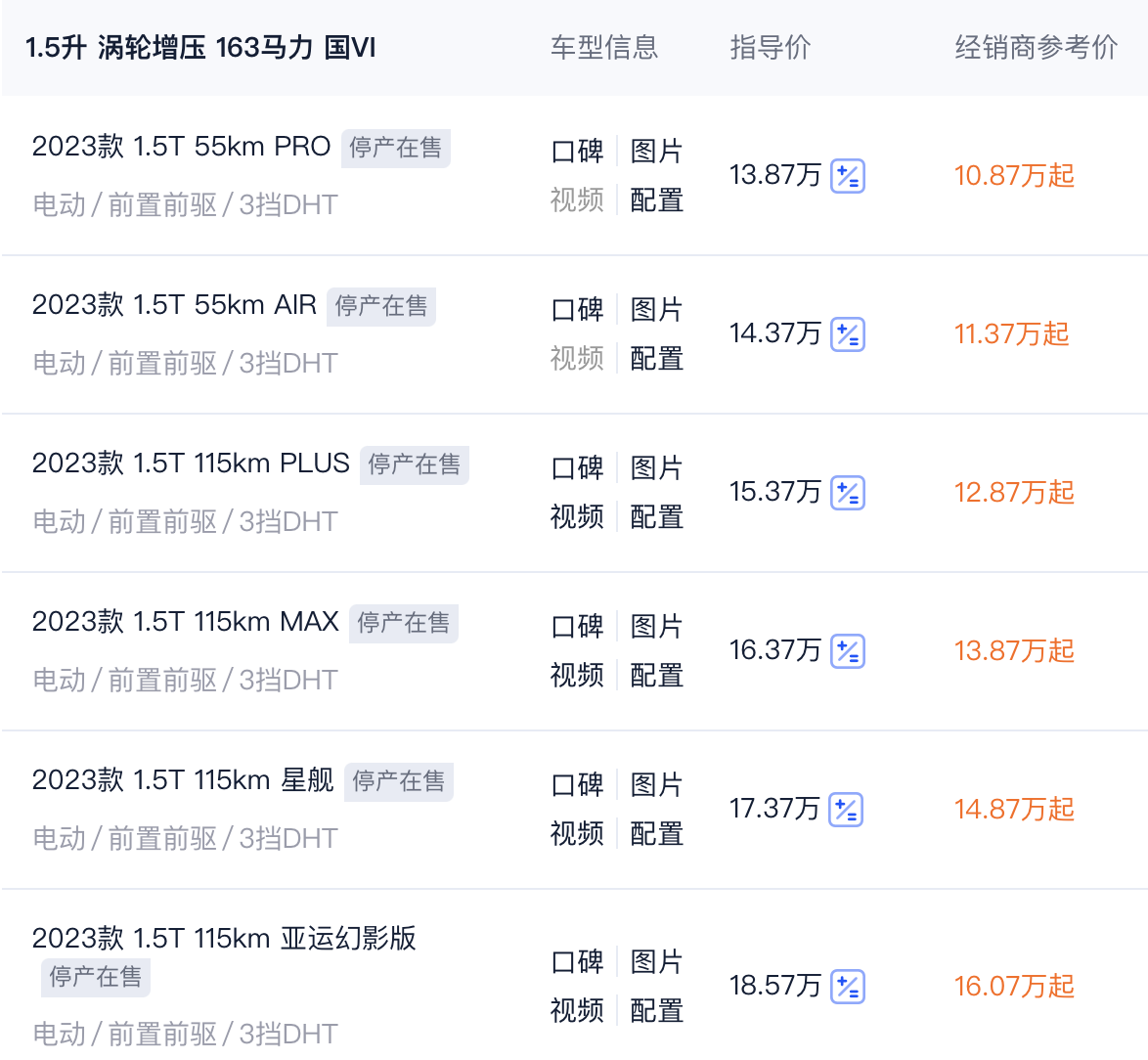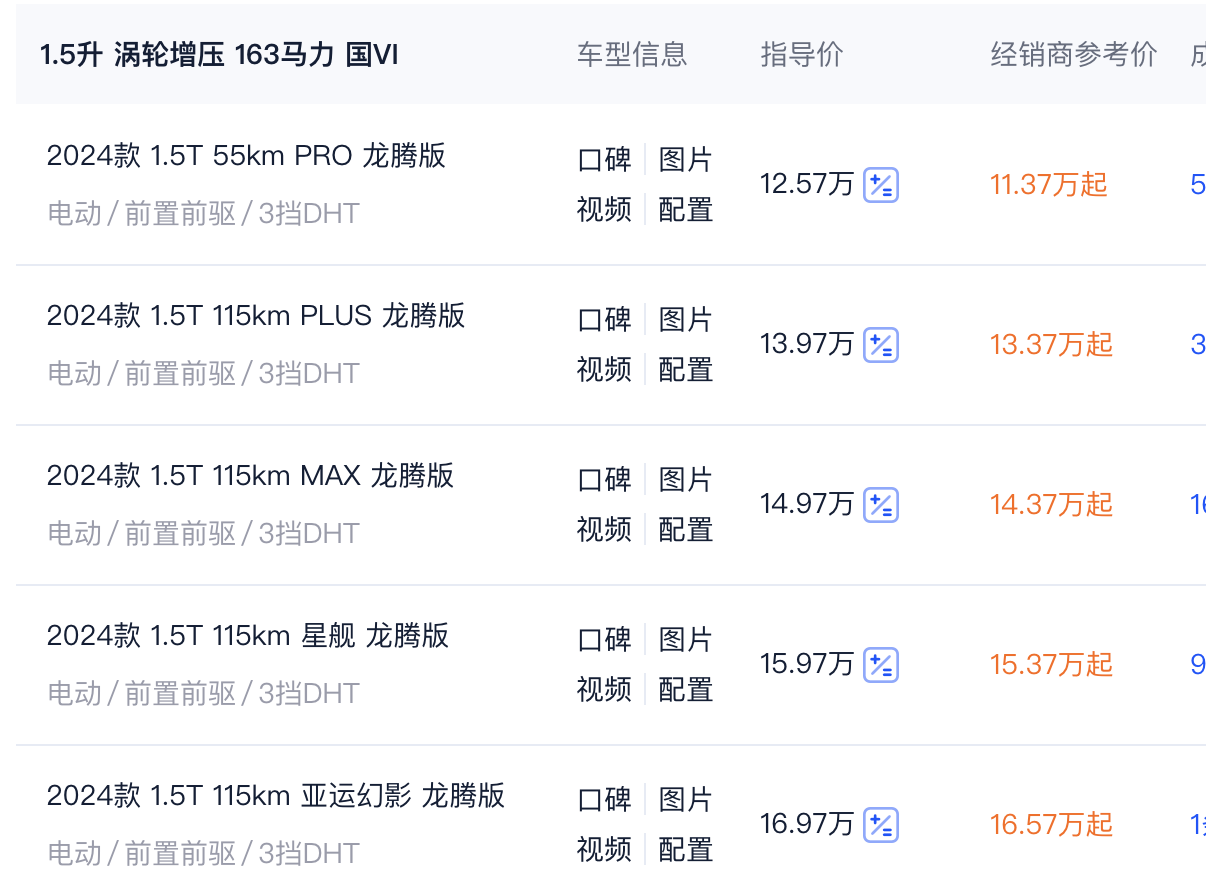 為什么說全新哈弗H6的產品力,有掀翻自家桌子的嫌疑呢?別的不說,我們用一些車型來簡單驗證一下,就能看出其中的端倪了。吉利銀河L7是一款車長4.7米的插混SUV車型,車長和級別和全新哈弗H6基本一致,這款車的廠商指導價為12.57-18.57萬元,但是這款車目前有3萬元的優惠,停產在售車型優惠后的起售價來到了10.87萬元的水平,和哈弗H6上市限時權益后的起售價差不多,2024款車型優惠后的起售價也不到11.5萬元。