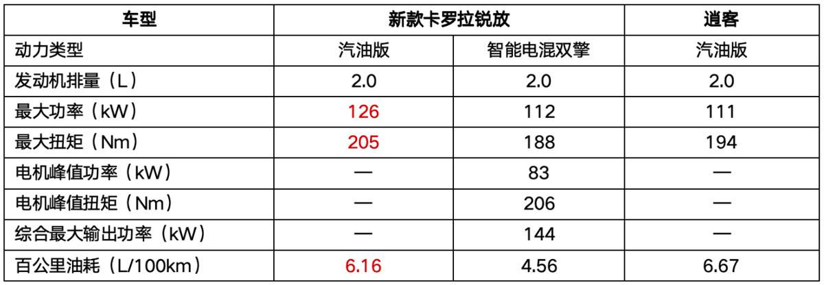 再來看看新款卡羅拉銳放,汽油版車型發動機最大功率126kW、最大扭矩205Nm,百公里油耗低至6.16L,與發動機匹配的是Direct Shift-CVT(模擬10速CVT變速箱),可以說從性能、油耗、動力輸出上都做到了無短板水準,相比逍客更勝一籌。