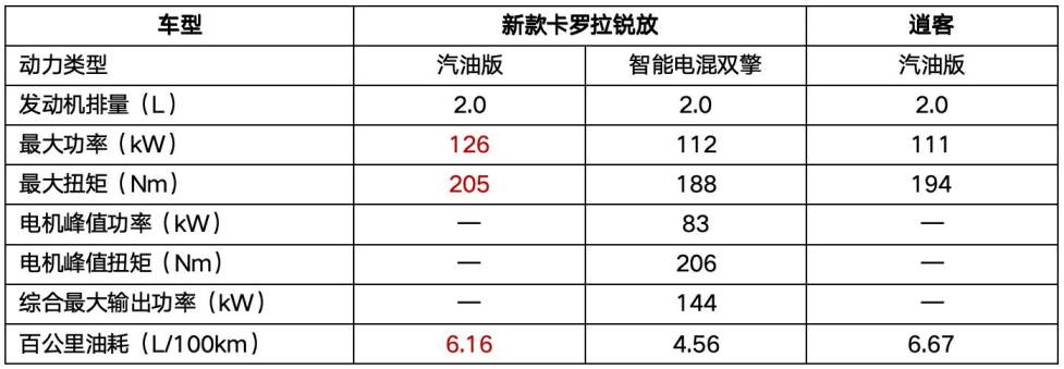 再來看看新款卡羅拉銳放,汽油版車型發(fā)動機最大功率126kW、最大扭矩205Nm,百公里油耗低至6.16L,與發(fā)動機匹配的是Direct Shift-CVT(模擬10速CVT變速箱),可以說從性能、油耗、動力輸出上都做到了無短板水準,相比逍客更勝一籌。