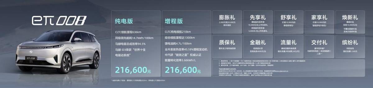 起步即高配,增程和純電兩個版本只有一個配置,售價也相同。東風奕派eπ008這一劍走偏鋒的設定,解決了不少“選擇困難癥”用戶的煩惱。21.66萬的指導價在各種權益下,到手價18.86萬起,超3米軸距、6座布局和齊活的“冰箱彩電大沙發”,以及免費送的靜音舒享包和智能家電升級包等,讓這款車更顯高價值屬性,成功躋身國內主流家用大型SUV市場。