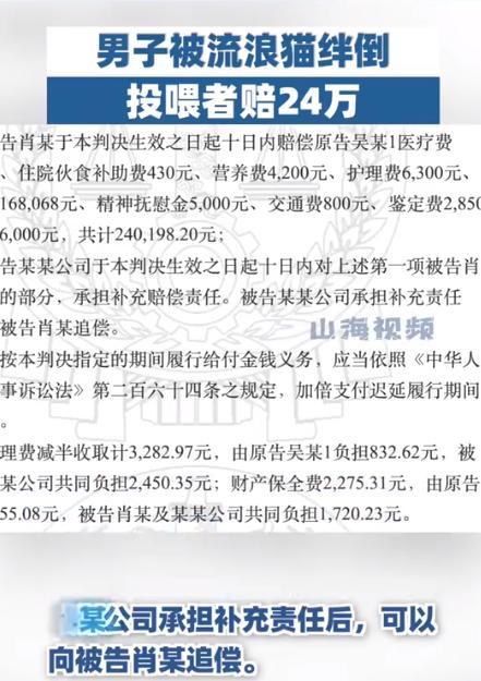 根據(jù)以上行為,法院認(rèn)定流浪貓與肖某構(gòu)成飼養(yǎng)關(guān)系,故肖某應(yīng)承擔(dān)賠償責(zé)任,賠償吳某醫(yī)療費、殘疾賠償金等共計240198.20元,該羽毛球館公司承擔(dān)補充賠償責(zé)任。