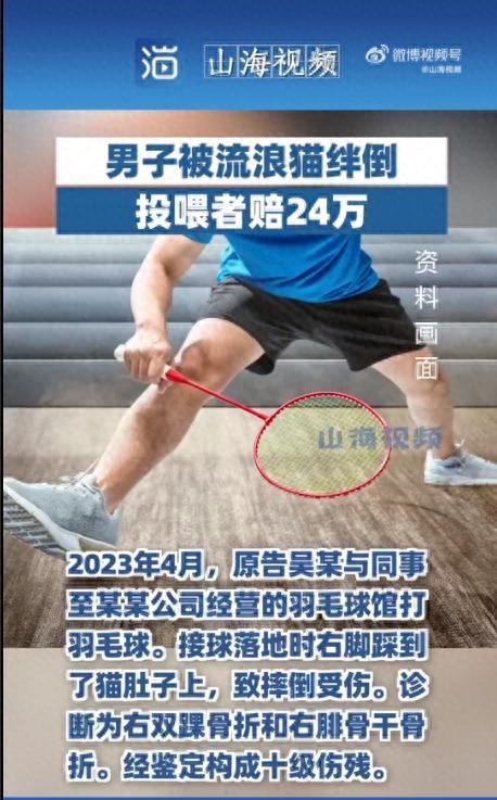 吳某與同事去羽毛球館打羽毛球。接球時沒注意右腳踩到了貓肚子上,隨后摔倒受傷,構(gòu)成十級傷殘。吳某將該羽毛球館公司及流浪貓的喂養(yǎng)者肖某起訴至法院。