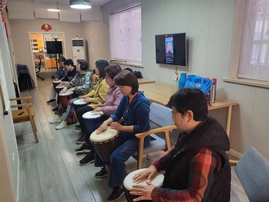 從沒(méi)有老師、沒(méi)有鼓,到克服困難上網(wǎng)找課程資源,并把桌子當(dāng)鼓練基本功、練節(jié)奏,再到自籌資金訂購(gòu)鼓,成員們互相探討、共同研究,不斷摸索、不斷練習(xí)、不斷提高……經(jīng)過(guò)不懈努力,2023年,“花樣奶奶”們帶著非洲鼓表演,站到了楊宅居民區(qū)的新年聯(lián)歡會(huì)上,贏得滿(mǎn)堂喝彩。