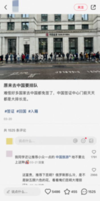 有在海外的網友稱“中國簽證中心門前天天都是大排長龍”。