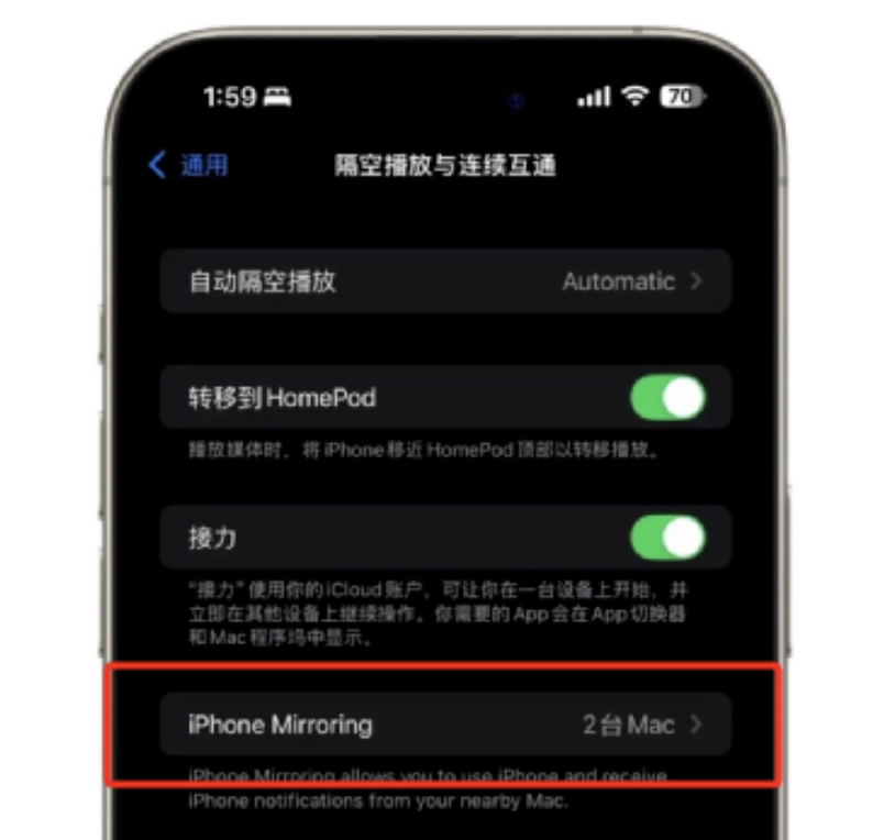 Mac 同步更新后,用戶可將 iPhone 畫面鏡像至 Mac 上,這樣 Mac 可控制 iPhone 手機或查看通知等功能。