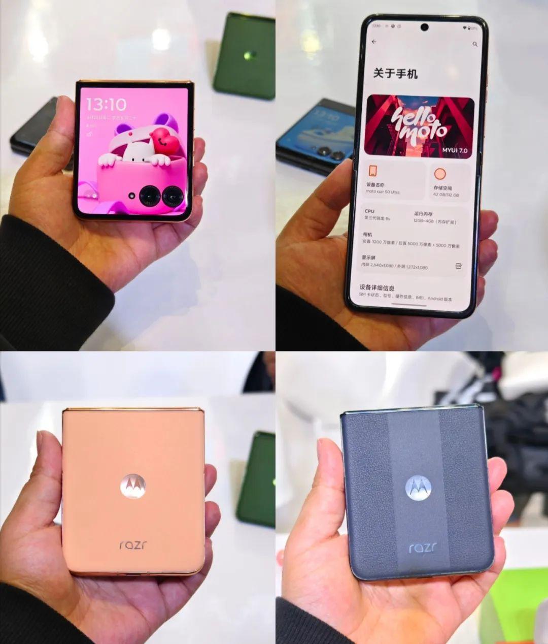 核心配置上,moto razr 50 Ultra搭載驍龍8s Gen3處理器、LPDDR5X、UFS 4.0,支持17個5G頻段、WiFi7,4000mAh電池,45W有線充、15W無線充、5W無線反向充電,前置32MP,后置雙攝?50MP主攝有OIS 1/1.95英寸底 ?50MP 2X長焦鏡頭 1/2.75英寸底,外屏自帶閃光燈,支持搖一搖打開相機、外屏自拍、支架拍照、手勢自拍、DV模式、鏡子模式等;此外還支持雙卡雙待、IPX8級防水、立體雙揚聲器,myui 7.0系統,內置聯想小天智能助手,實現慧眼識屏、AI畫師、AI出行、AI通話等功能。
