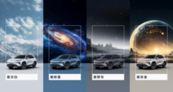 車(chē)色方面,提供星漢白、星際藍(lán)、星野灰、星爍金四種閃耀星色可選。星漢白取自星漢燦爛,若出其里;星際藍(lán)仿佛置身星際無(wú)垠,深邃靜謐;星野灰如若星垂平野,沉靜神秘;星爍金遠(yuǎn)望璀璨如金,流光溢彩;在色彩工藝上使用金屬漆與珠光漆,閃爍飽滿(mǎn)的珠光顆粒,在光照下富有層次。如夜晚星空中的點(diǎn)點(diǎn)星光,閃耀著獨(dú)特的光芒,照亮千萬(wàn)家庭的美好前路。