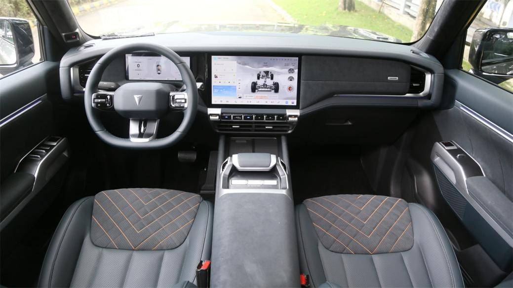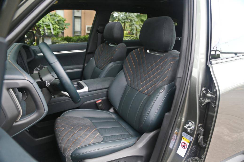 用料方面,區別于硬派SUV普遍慣用的硬塑料,深藍G318采用了更多的皮質包覆,而且其中還包含了類似翻毛皮的材質,防滑效果很好。座椅則是采用了雙色混搭材質,其中灰色部分增強了摩檫力,加上坐墊和靠背提供厚實的包裹性,對提升駕駛感有不小的幫助。