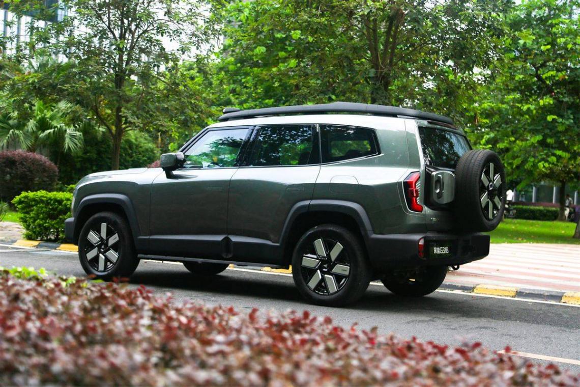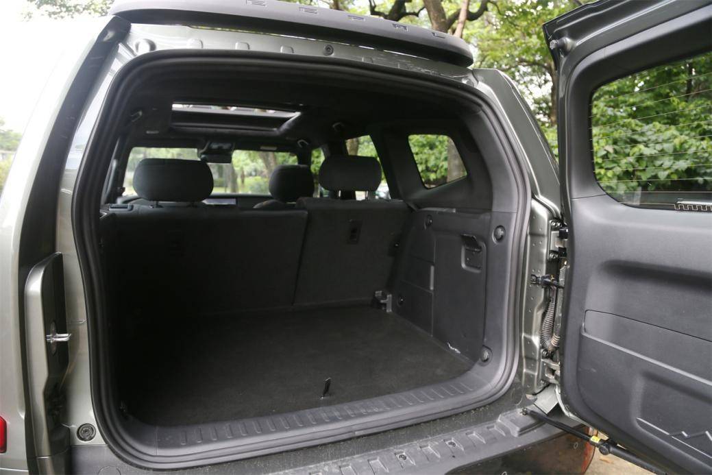 輪轂則采用了六輻式樣的設計,造型也很特別。平直的尾部搭載了全尺寸的備胎,一方面體現了硬派越野的視覺,另一方面實用性也更高,不像有的車型“背個小書包”只是為了好看。而且尾門還具備電吸的功能,使用起來非常的方便。