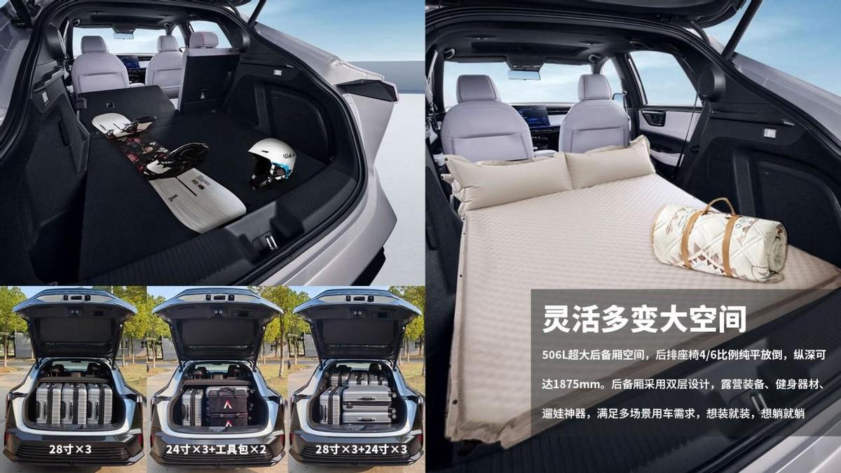 首先,用了隱藏式的前中托盤和半島式扶手箱,能夠滿足狹窄停車位主副駕靈活穿行。其次前排座椅放倒聯通第二排,秒變大床房,更適合午睡。最后,能夠放倒全平的后備箱,能夠提供506L的超大容積。