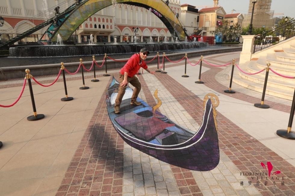 “開著”飛行器愜意翱翔,“坐上”貢多拉小船自由穿梭……近日,一系列3D街畫藝術(shù)作品出現(xiàn)在上海佛羅倫薩小鎮(zhèn),以立體視覺藝術(shù)連接現(xiàn)實與虛擬世界,邀請市民游客踏入一場充滿無限想象力的藝術(shù)夢境。