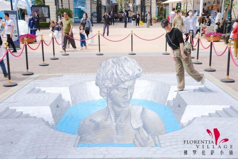 這組“迷失在意大利”系列3D街畫藝術(shù)作品,由小鎮(zhèn)聯(lián)手意大利3D繪畫藝術(shù)家Cuboliquido共同打造。作品從意國風(fēng)光及文藝復(fù)興時期的名家作品中汲取靈感,創(chuàng)作《神秘飛行器》《活力米蘭之旅》《漫步托斯卡納》《浪漫貢多拉》《藝術(shù)之光大衛(wèi)》《精妙自乘橋》《抱銀鼠的女子》等7幅3D立體街頭藝術(shù)作品,并借助丙烯顏料、意大利傳統(tǒng)粉筆畫以及PVC數(shù)字打印等藝術(shù)手法加以呈現(xiàn)。漫步于上海佛羅倫薩小鎮(zhèn)的經(jīng)典地標(biāo)之中,市民游客可徜徉于藝術(shù)家的奇思妙想之間,沉浸式體驗古典與現(xiàn)代的精妙碰撞。