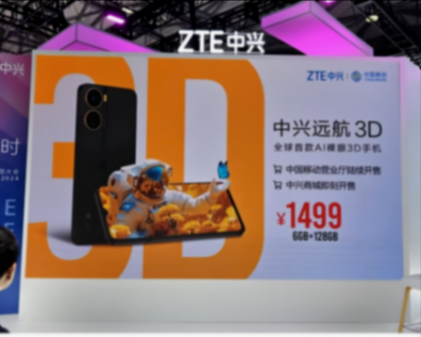 6月26日消息,今天,中興聯合中國移動在2024MWC上海展發布全球首款AI裸眼3D手機—中興遠航3D,售價1499元(6GB+128GB)。