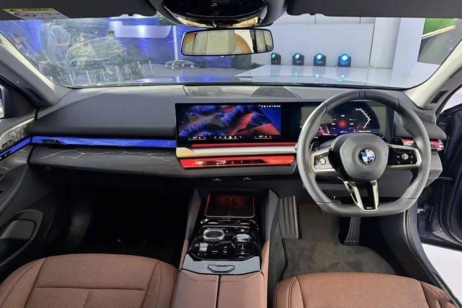 內飾方面,新車是右舵車,三幅式方向盤,配備12.3英寸儀表屏+14.9英寸中控屏,內置第8.5代操作系統的BMW iDrive,還提供氛圍燈,在扶手箱、門把手等多處位置均采用皮質包裹,采用小撥桿,很精致。