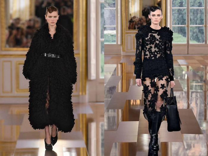 繽紛多彩,玫瑰也有不同面貌。作為一款經典的基礎顏色,黑色被聚焦和放大,用以重新詮釋華倫天奴(Valentino)的標志性元素——玫瑰、褶皺、刺繡以及蕾絲。在黑色的映襯下,這些元素展現出輕盈與堅韌的共存,形成了別具一格的視覺畫面。
