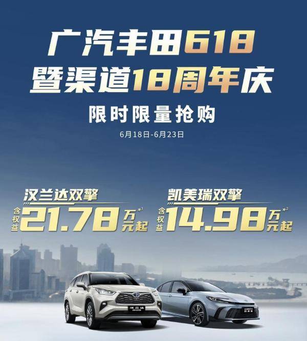 無獨有偶,一汽豐田帶頭降價,其他的日系車企自然不甘落于人后。其中該品牌的同門兄弟廣汽豐田也在618期間推出了限時購車權益,今年才完成產品換代的凱美瑞雙擎含權益售價14.98萬元起,對比官方指導價格降低3萬元,燃油時代的中型SUV霸主漢蘭達雙擎含權益售價為21.79萬元起,相比官方指導價下調3.2萬元。