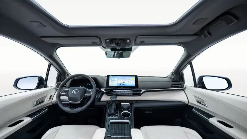 內飾方面,我覺得賽那是做得非常得好,他與新能源車的布滿大屏幕不同,中控臺做得非常的簡約大方,保留實體按鍵,操作非常的方便。