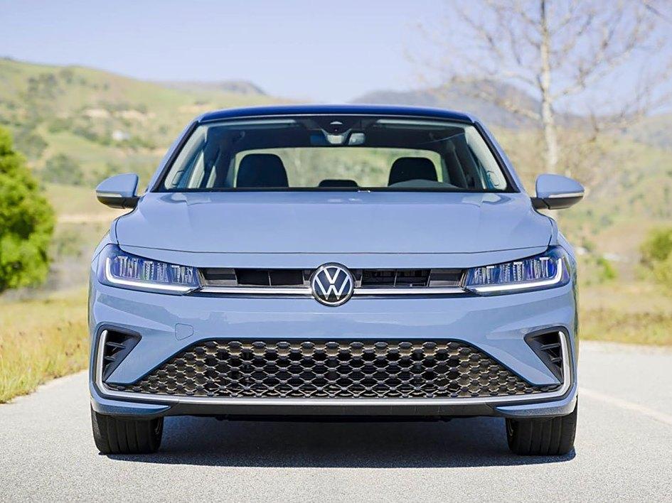 新款大眾Jetta的前臉采用了上下分體式格柵設計,上方的格柵面積更小,并且可以看到貫穿式的燈帶,大燈組的造型也更加修長銳利,視覺沖擊力更強。