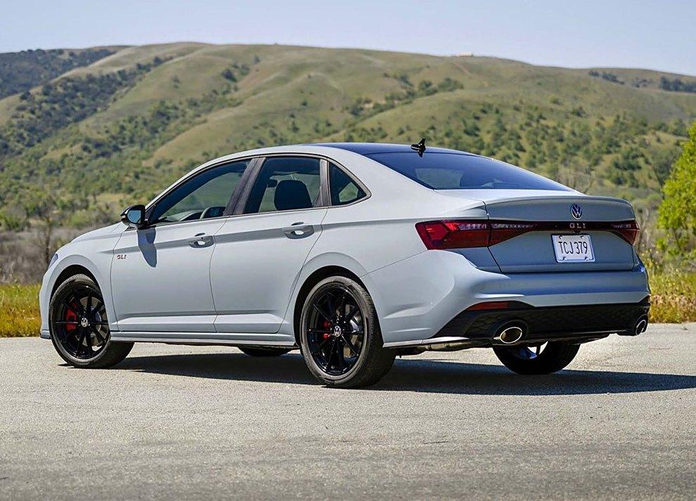 作為性能版的GLI車型,其前臉的下包圍加入了紅色的飾條,同時在中網(wǎng)一側帶有GLI的標識。車側最明顯的變化就是配備了18英寸熏黑的輪轂,內(nèi)部的卡鉗顏色也搭配為紅色,突出其運動屬性。