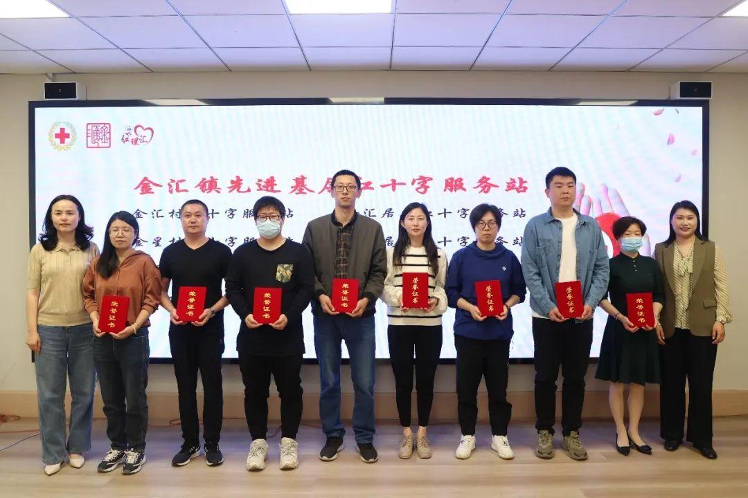 為2023年度金匯鎮(zhèn)先進(jìn)基層紅十字服務(wù)站負(fù)責(zé)人頒發(fā)榮譽(yù)證書(shū)。