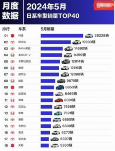 對(duì)于一家汽車(chē)企業(yè)來(lái)說(shuō),銷(xiāo)量多寡是其在市場(chǎng)上的立根之本,當(dāng)你的銷(xiāo)量下降的時(shí)候,說(shuō)再多為自己辯解都是沒(méi)有用的。在2024年5月份,日系各車(chē)企集體交出了一份糟糕的成績(jī),東風(fēng)日產(chǎn)(包括日產(chǎn)、啟辰和英菲尼迪品牌)銷(xiāo)量為6.1萬(wàn)輛,同比下滑1.7%;本田在華銷(xiāo)量為6.6萬(wàn)輛,同比下滑幅度高達(dá)34.7%;豐田在華銷(xiāo)量是12.4萬(wàn)輛,同比下滑15.8%。