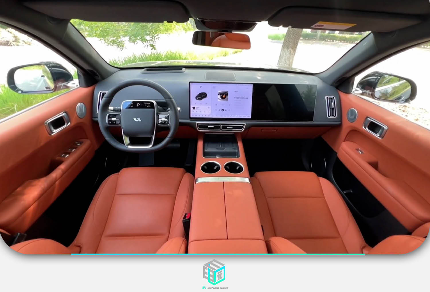 來到車里,還是滿滿的理想味兒,跟L7的內飾基本上就是一模一樣。15.7英寸雙聯屏設計,配備8295芯片,方向盤上是小小的儀表盤,前面是一個13.35英寸的HUD。