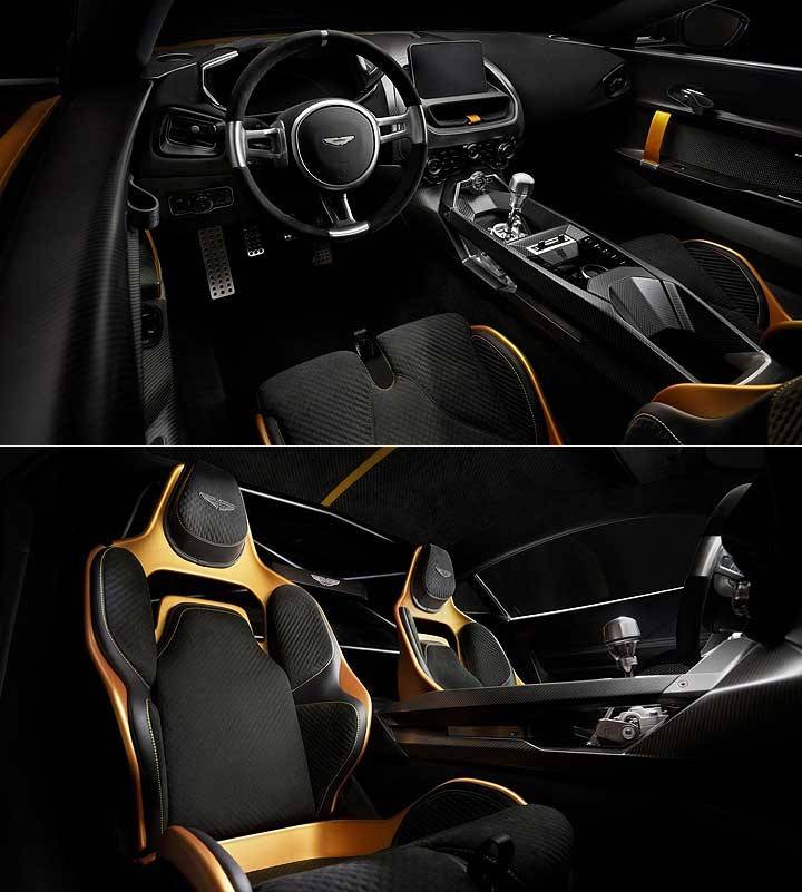 Valiant 的內飾大致沿用了 Valour 的設計,鞍部可見手動車獨有的排檔機構,并配置兩張以 Alcantara 類麂皮包覆的碳纖維桶型跑車座椅。