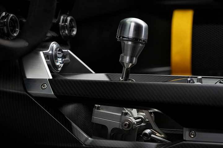 雙座規劃的座艙內,Valiant 則是大致沿用了 Valour 的設計,不僅在鞍部可以清楚地看見手動車獨有的排檔機構,還替它搭配了圓形的金屬排檔頭,并配置兩張以 Alcantara 類麂皮包覆的碳纖維桶型跑車座椅、金屬的腳踏板組,以及附拉帶的輕量碳纖維門板。