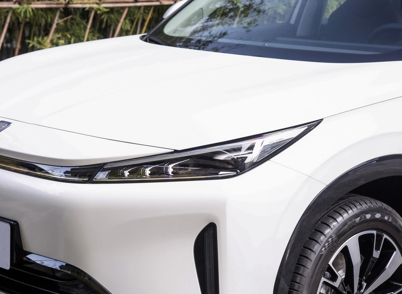 榮威D5X DMH的外觀設計偏簡潔、優雅的風格。具體來看,其前臉采用新能源汽車流行的封閉式設計,狹長銳利的大燈組與中間燈帶相連接,視覺沖擊力足。下方格柵設計得比較大,鍍鉻飾條貫穿左右,進一步提升了前臉的視覺沖擊力。
