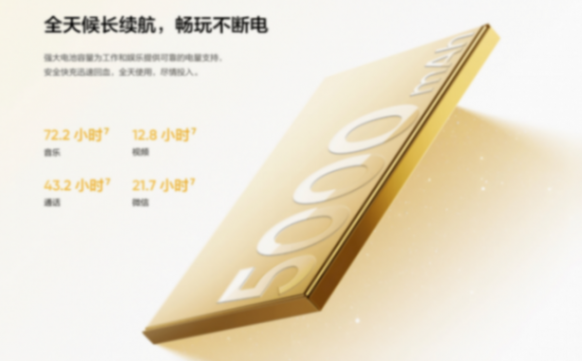 不僅如此,針對學生黨對于手機續航能力的高度需求,有著7.94mm超薄機身加持,真我V60系列也為我們帶來了5000mAh超大容量電池的設計方案,從官方給出的實測數據中可以看出,在滿電狀態下真我V60系列可做到12.8小時的超長續航播放表現,即使我們上課一天歸來也無需為手機電量問題而擔憂。